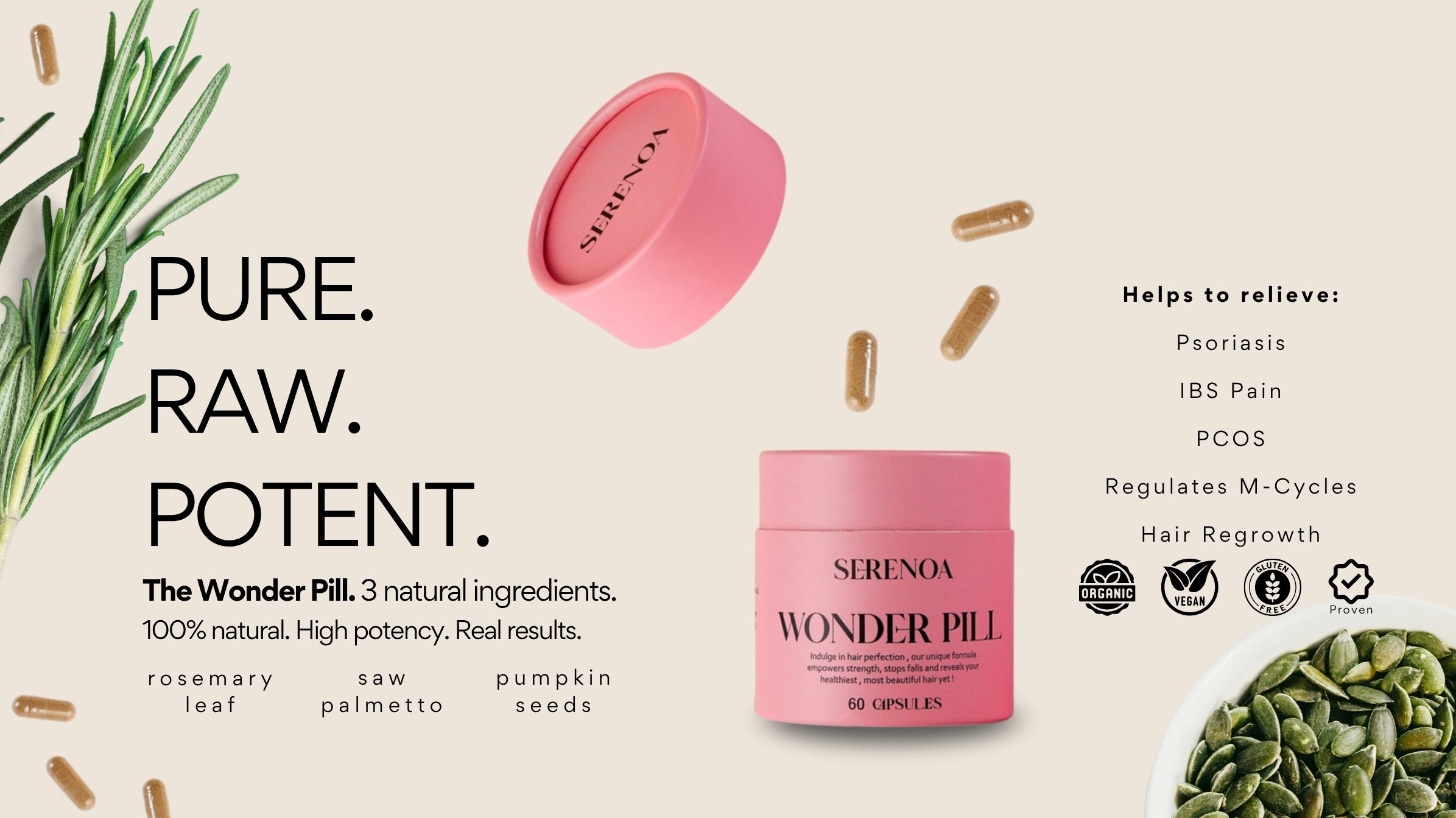 Wonder pill Wakes up dormant hair follicles for thicker, fuller strands.